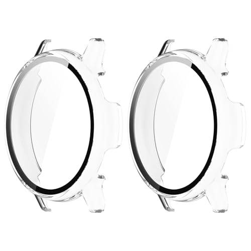 GMUJIAO [2 Pack] Compatibile con Garmin Vivoactive 5 per Cover,Custodia Rigida con Vetro Temperato,Protezione Totale Ultra Sottile HD Clear Pellicola Protettiva-Trasparente
