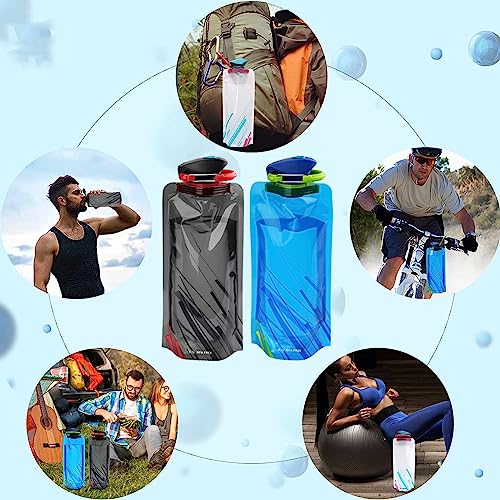 GNAUMORE Bottiglia di Acqua Pieghevole Set,2 Pezzi Bottiglia d'Acqua Pieghevole,Flessibile Riutilizzabile Borraccia,Pieghevole Bottiglia,Bottiglia d'Acqua Pieghevole,per Escursionismo,Corsa,700ML