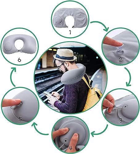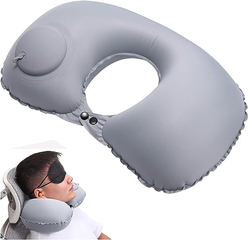 GNAUMORE Supporti Gonfiabili Collo a Forma di U,Cuscino Cervicale da Viaggio Gonfiabile,Cuscino da Viaggio,Cuscino Cervicale da Viaggio in Aereo,U Cuscino Gonfiabile Automatico,Grigio