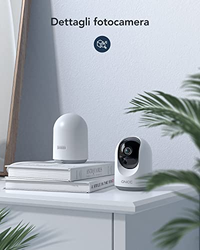 GNCC Telecamera Wi-Fi Interno, 1080P 2 Pezzi Videocamera Sorveglianza Rotazione a 360°PTZ, Visione Notturna,Tracciamento Automatico del Movimento e Allarme Suoni (Manuale Su e Giù), P1-2