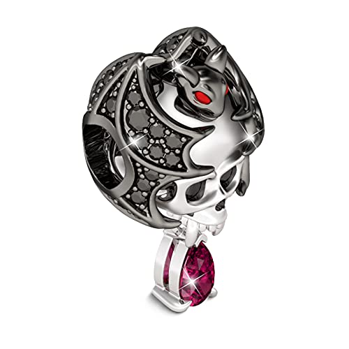 GNOCE Charm Teschio con Pipistrello Teschio Pipistrello Figo Bead Charm Donna Argento Sterling 925 con Cristalli in Zirconia Cubica Perline Ciondolo per i Braccialetti e Collane