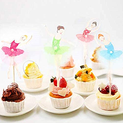 GNOUQW Cupcake Picks Topper Sticks Fiocco Cupcake Toppers Toppers Torta Ballerina Ornamenti per La Cupcake Toppers Ballerine Cupcake Toppers Cute Torte Cupcake Toppers per Torte Festa A Tema 24 Pezzi