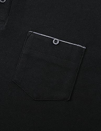 GNRSPTY Polo Uomo Manica Lunga Slim Fit Cotone Casual Maglia con Tasca Reale Golf Tennis Magliette T-Shirt Uomo Shirts,Nero-0,3XL