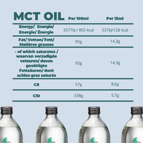 Go-Keto MCT Oil Multipack, 2x 500ml | Olio MCT C8/C10, 100% olio di cocco, no olio di palma | perfetto per dieta chetogenica | crema di caffè cheto per bulletproof coffee o frullato cheto | vegano