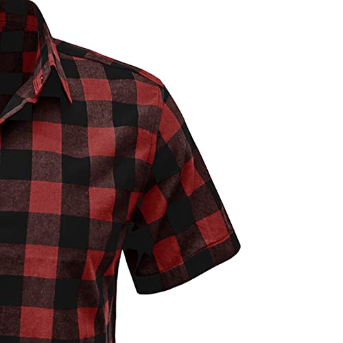 GO2NAATI Camicia a Quadri Uomo Camicia a Quadri in Puro Cotone Camicia Casual Camicia Hawaiana Cardigan a Maniche Corte Camicia Estiva Uomo Camicia Casual