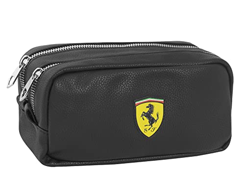 Goalshop.it FERRARI - Astuccio per la Scuola con Doppia Zip, Interno orgnaizzato e Tasca Posteriore con Zip, Nero, cm 20x10hx10