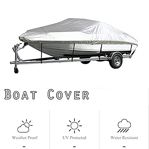 GOBBIS Copertura per Barca,Telo Copri Barca 11-19FT Riflettente 300D Yacht Barca for Barche da Esterno Impermeabile Grey Sunproof UV. Protector Heavy Duty Speatboat Boat Cover Pesca