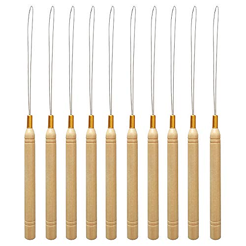 Gobesty Ago ad anello per estensioni dei capelli in legno da 10 pezzi, strumenti per lestensione dei capelli, strumento per gancio per tirare il filo e strumento per perline per estensioni di