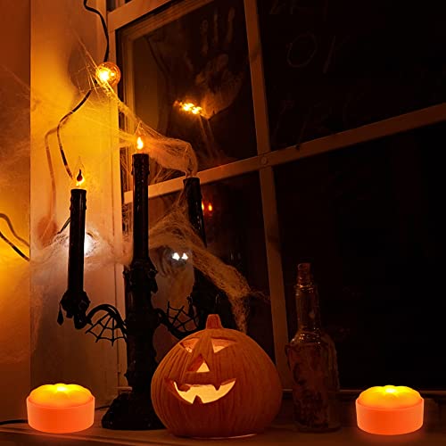 Candele/Luci Ecologiche + 100% Di Sicurezza: Le Nostre Candele Elettriche Per Il Tè Di Halloween Sono Senza Fiamma, Antigoccia, Senza Fumo, Realistiche e Sicure Per Tremolare Candele Che Sembrano UnAutentica Zucca, Ma Non cè Calore e Cera, Quindi è Ecologico e Sicuro Senza Pericolo Di Incendio Vicino a Tende, Letto, Cucina e Altri Mobili Per La Casa