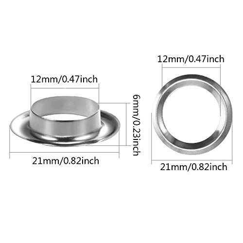 Gobesty Kit di occhielli da 1/2", kit di 100 set di occhielli in metallo con strumento di regolazione dell'occhiello, kit di riparazione di occhielli da 12 mm, per teloni, tende in tessuto, pelle, fai da te, colore: argento