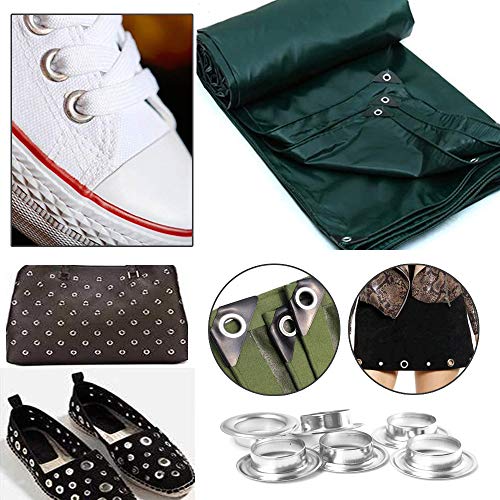 Ampia applicazione: il kit di riparazione per occhielli è adatto per progetti fai da te. Il pugno può premere occhielli in una varietà di materiali come tessuto, telone, pelle, tende, rivestimenti per piscine, indumenti, cappelli, scarpe, tende, tela, cancelleria, borse, etichette, cinture, ecc.
