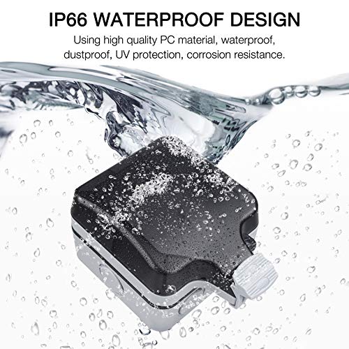 [Presa esterna IP66 con materiale durevole] La presa esterna IP66 in materiale ABS di alta qualità è durevole e offre unelevata protezione contro getti dacqua e polvere. Corpo robusto e resistente agli urti, non si romperà né si sbiadirà.