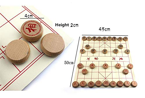 Gobus Set da Gioco Scacchi Cinesi in faggio Set da Gioco Xiangqi, Dimensioni Scacchi: Diametro 4 cm (Scatola di Legno e Scacchiera in Pelle)