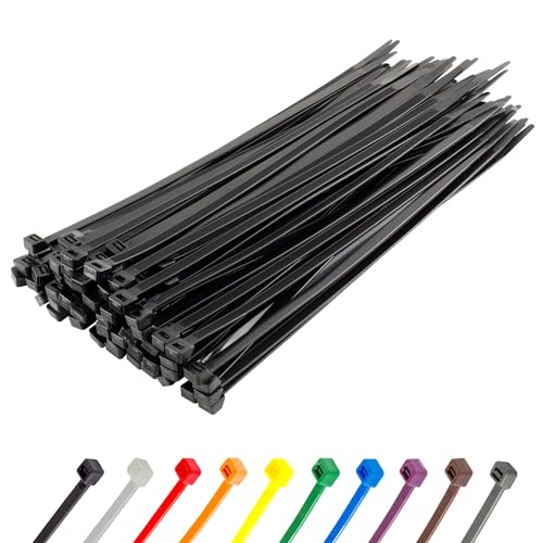 Gocableties - Fascette Plastica Lunghe, Nere - 370 mm x 7,6 mm - 100 Pezzi - Estremamente robuste - Set resistente ai raggi UV