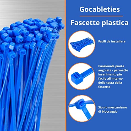 Gocableties - Fascette Plastica Blu - 150 mm x 3,6 mm - 100 Pezzi - Piccole Fascette Colorate