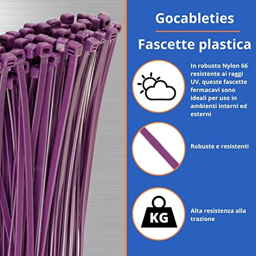Gocableties - Fascette Plastica Viola - 370 mm x 4,8 mm - 100 Pezzi - Fascette Lunghe Colorate