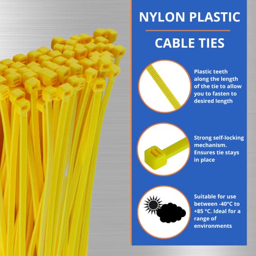 Gocableties - Fascette stringicavo colorate, resistenti e di alta qualità, in nylon, 430 mm x 9,0 mm, Confezione da 100 pezzi, giallo