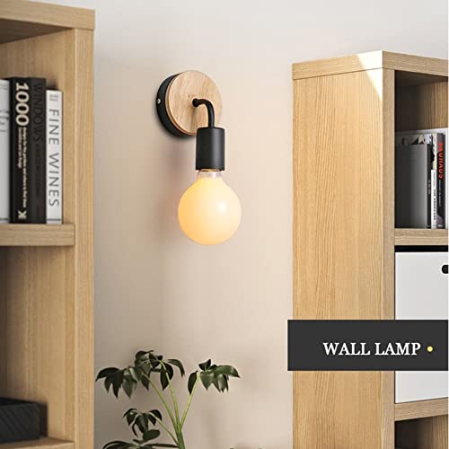 GOCBOBO 2 Pezzi Applique da Parete Interno E27 Vintage Metallo Lampada da Parete in Legno Industriale Lampada a Muro per Corridoio Camera da Letto illuminazione Nero (Senza Lampadine)