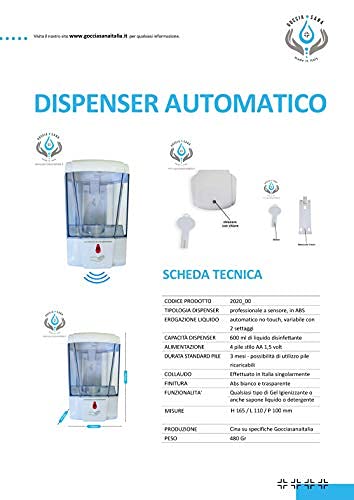 Gocciasana - Dispenser Automatico Gel Sapone Igenizzante - Perfetto per Casa Ufficio Negozio Batterie Incluse