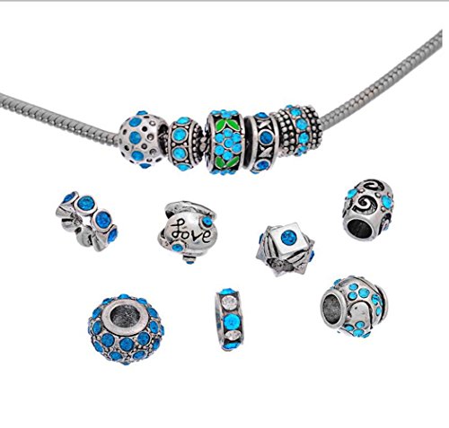 Godagoda 12PZ Mix Lotto Colore Argento Antico Distanziatore Perle Perline con Strass per Charms Bracciale