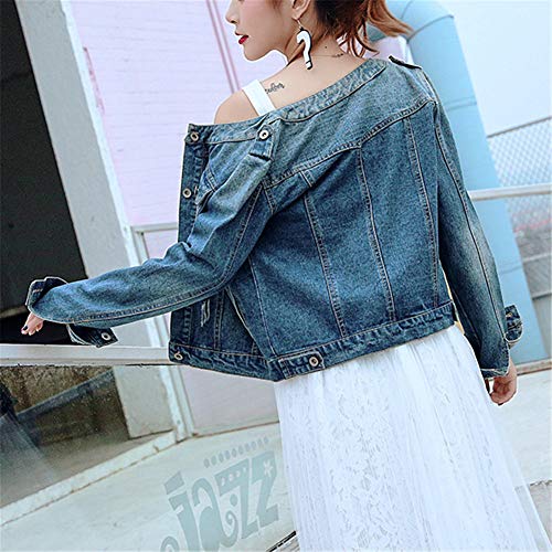 GODGETS Donna Giacca di Jeans Senza Colletto Slim Fit Cappotto Denim Jeans Giacca Blu M