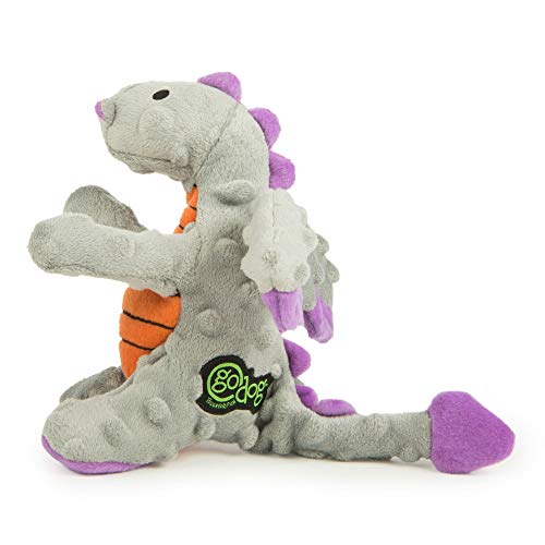 GoDog Dragon with Chew Guard Technology Tough Plush Dog Toy, Gray, Small