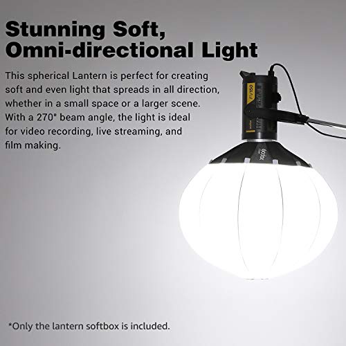 Splendida luce morbida e omnidirezionale: questo softbox Lanterna sferica è perfetto per creare una luce morbida e uniforme che si diffonde in tutte le direzioni, sia in uno spazio piccolo che in una scena più grande. Con un angolo del fascio di 270 °, la luce è ideale per la registrazione di video, lo streaming live e la realizzazione di filmati.