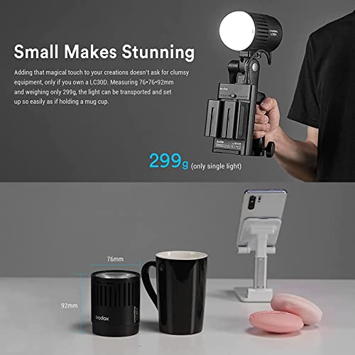 Godox LC30D Litemons Lampada da Tavolo a LED, CRI 95+/TLCl 96+, 8 Effetti di Luce Preimpostati, Dimensioni della Tazza, luce a LED per Riprese Desktop, Streaming Live, Fotografia di Piccoli Prodotti