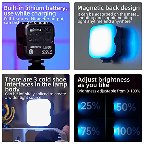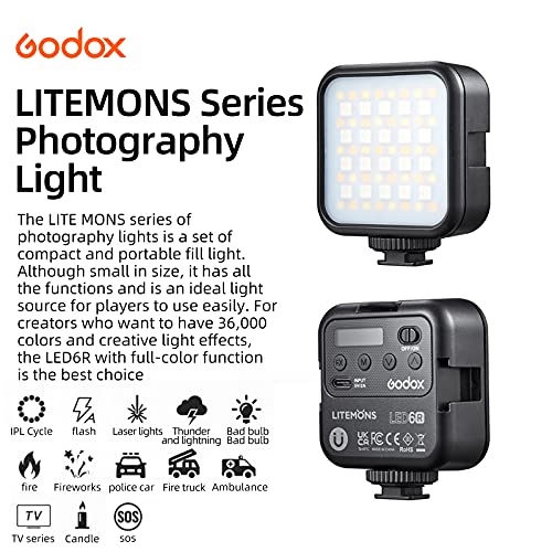 GODOX LED6R 6W Luce Video LED RGB 13 Effetti FX 0-100% Regolazione della Luminosità Batteria Ricaricabile 1800mAh 3200K-6500K LITEMONS Luce Tascabile per Ritratti e Fotografia di Prodotti