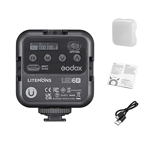 GODOX LITEMONS LED6R Luce video LED RGB Mini luce di riempimento ricaricabile 3200K-6500K Dimmerabile 13 effetti di luce Supporto adsorbimento magnetico con 3 supporti per scarpe fredde