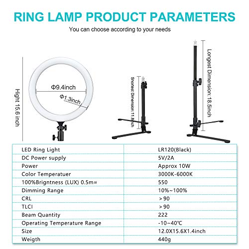 【Anello luminoso dimmerabile】 LED bicolore integrati da 3000K a 6000K e campi di luminosità dimmerabili LR120 dal 10% ~ 100% e eccellente CRI> 90 TLCI> 90. Puoi regolarlo in modo flessibile e semplice per scegliere qualsiasi effetto di illuminazione desideri.