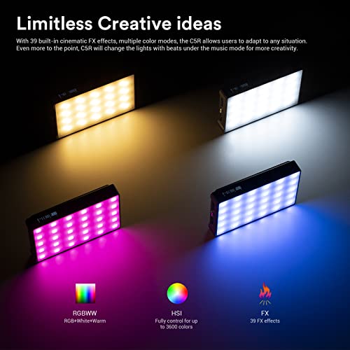 ❣【C5R RGB film e lampada creativa televisiva】: C5R luce forografica adotta perline della lampada LED ad alta luminosità, con illuminazione più alta sotto lo stesso potere. Con CRI96 + e TLCI97 + indice ultra-alto di resa del colore, può ripristinare il colore dell'oggetto altamente.