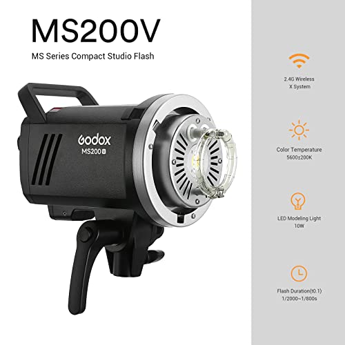 Godox MS200-V MS200V 200W Compact Studio Strobe Flash Light, GN53 5800K 2.4G, Tempo di Riciclaggio 0.1-1.3s, Bowens Mount, sistema 2.4G X per fotografia di ritratto in studio
