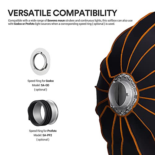 ❥ 【Adotta un supporto bowens altamente compatibile】: Questo softbox GODOX compatibile per vari flash per attacco Bowens, può sostituire il mandrino corrispondente (SA-PF2/SA-GD), compatibile per le luci di ripresa Shenniu o Profoto.