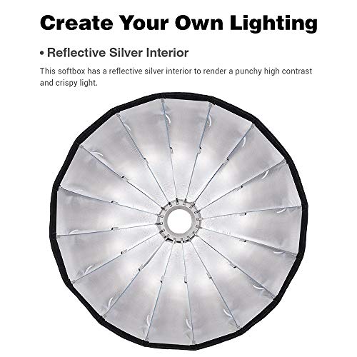 Questo softbox ha un interno argento riflettente per rendere un forte contrasto elevato e una luce nitida.