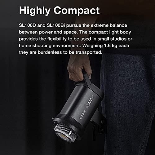 Godox SL100BI Luce Video LED Bowens Mount, 100W CRI96+ TLCI97+ 2800K-6500K, 32100Lux@1m, 11 Effetti di luce, Controllo APP Bluetooth, Angolo del fascio 120°, Interfaccia utente intuitiva