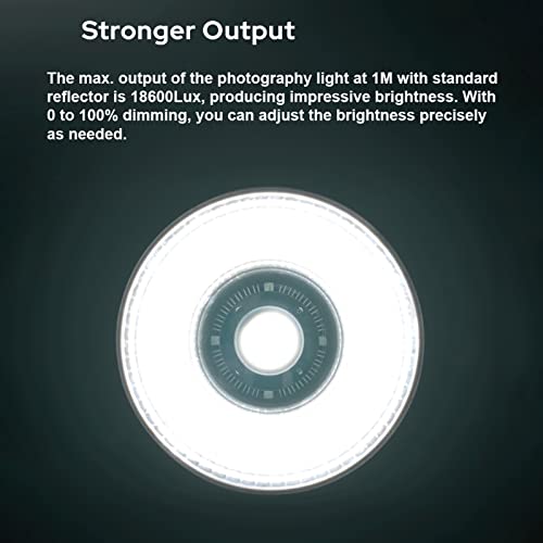 【Uscita più forte】 L'emissione luminosa fotografica dello specchio a specchio standard è 18600Lux a 1M, producendo una luminosità impressionante. Con l'oscuramento da 0 a 100%, puoi regolare con precisione la luminosità in base alle tue esigenze.