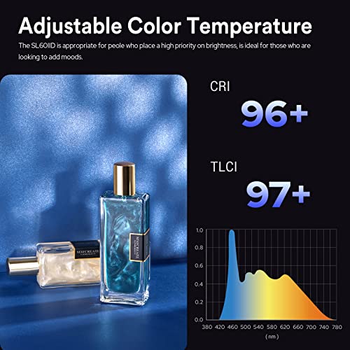 ❣【Elevata luminosità】: con un riflettore standard, SL60IID luci studio offre una luminosità di 18.600Lux (@5600K 1m). È supportata la regolazione precisa da 0% a 100%.