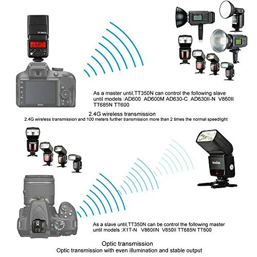 Godox TT350N Flash Thinklite TTL Speedlite 2.4 G HSS 1/8000s GN36 Compatibile per Nikon D810 D800 D750 DSLR D700 D610 D7100 D5200 D90 e Senza Specchio Digital Fotocamera