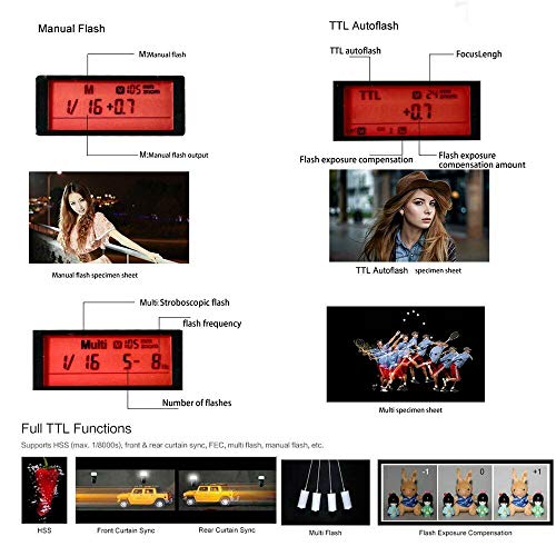 ❥ 【Funzionalità TTL complete】 Trigger flash supporta HSS (fino a 1 / 8000s), FEC, sincronizzazione tenda anteriore e posteriore, multi-flash, flash manuale