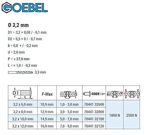 GOEBEL Rivetto standard cieco A4/A4, testa piatta, 3,2 x 12 mm