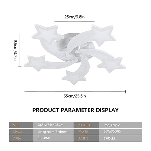Goeco Plafoniera LED Soffitto, 60W 6700LM Lampada da Soffitto LED Moderna con Forma de Estrella en Acrílico, 3000K Luce Bianco Calda, Lampadario LED per Soggiorno, Camera Bambini, (Bianco, Dia. 65CM)