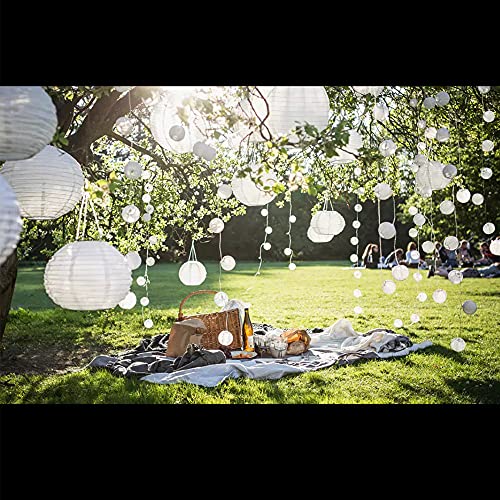 Varie misure.Questo set di lanterne di carta bianca include diversi diametri: 30,5 cm (2 pezzi);