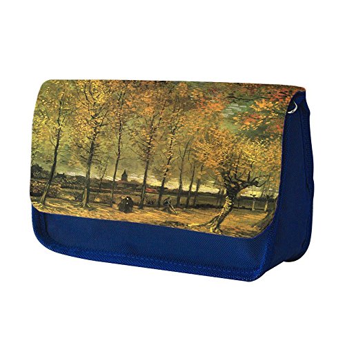 Van Gogh Lane With Poplars, Blu Scuola Bambini Sublimazione di alta qualità Polyester Astuccio Matita Caso con Design Colorato. 21x13 cm.