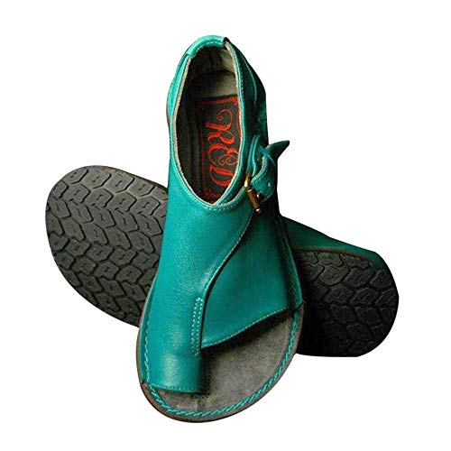 Goglor - Comodi sandali da donna con plateau, zeppa e supporto plantare per alluce valgo, con fascette, Blue, EU 37