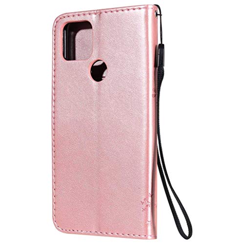 GOGME Cover per Google Pixel 4a 5G, Custodia per Cellulare Portafoglio in Pelle Goffrata con Motivo, con Vani di Carte e Chiusura Magnetica per Google Pixel 4a 5G Cover, Oro Rosa