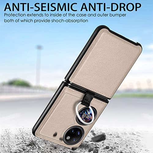 GOGME Cover per Huawei P50 Pocket, Custodia per Telefono in Pelle Retro Ultra Sottile Cassa Morbido TPU Silicone Case, Antiurto AntiGraffio Cover con Nastro e 360° Anello, Oro