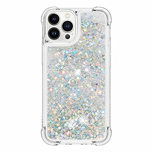 GOGME Cover per iPhone 13 PRO Max 6.7 Cover, Custodia in Liquido Quicksand con Brillantini, iPhone 13 PRO Max 6.7 Case in TPU Antiurto Ultra Sottile in Silicone Morbido, Argento