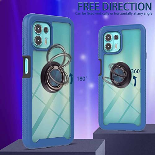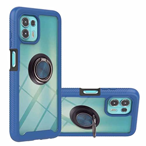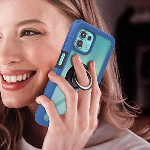 GOGME Cover per Motorola Edge 20 Lite/Edge 20 Fusion, [con Anello Supporto] Rugged Custodia Trasparente con Cornice in TPU Copertura, Staccabile Silicone PC Antiurto Protettivo Cover, Blu