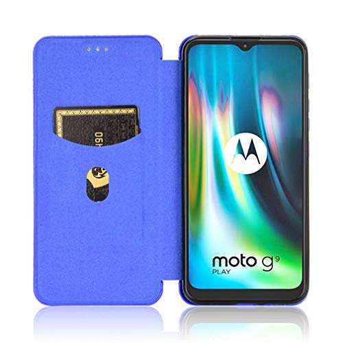 GOGME Cover per Motorola Moto E7 Plus Cover Magnetica Portafoglio, Custodia in Robusto Pannello PC in Fibra di Carbonio + Antiurto TPU + Anello Kickstand con [Slot per schede]. Blu